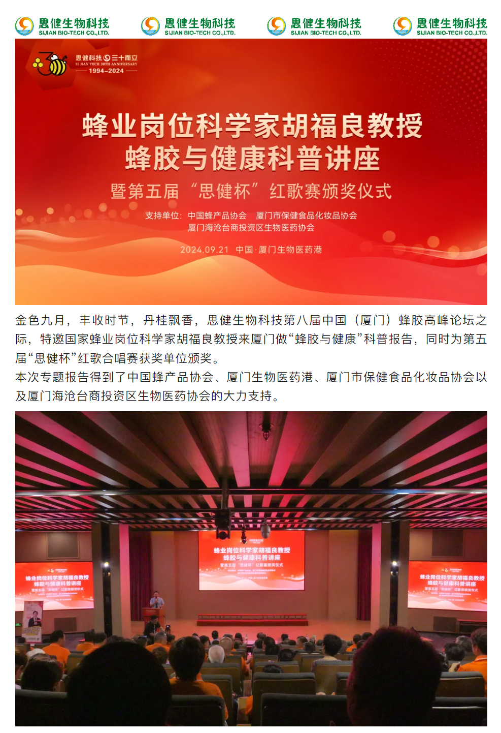 蜂業(yè)崗位科學家胡福良教授來廈“蜂膠與健康”科普報告圓滿成功