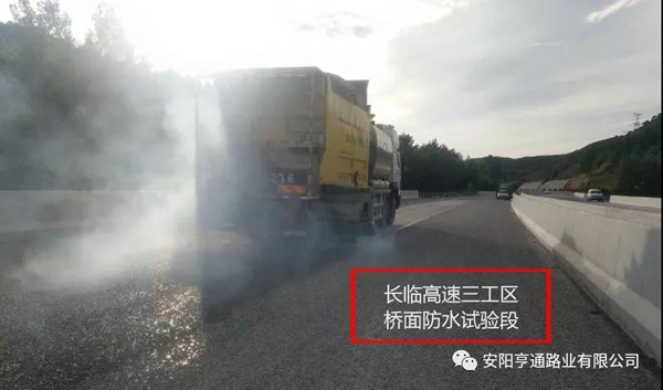 此次橋面防水試驗(yàn)段獲得了項(xiàng)目、監(jiān)理和指揮部的一致認(rèn)可,為我公司在長(zhǎng)臨高速的防水施工奠定了一個(gè)良好的基礎(chǔ),也為亨通路業(yè)2018年的工程又傳來(lái)了一份捷報(bào)。